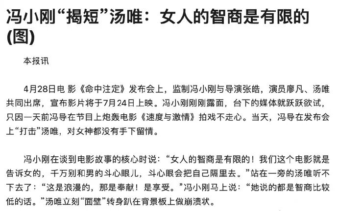 冯小刚的下凡,这回有点脸先着地了。