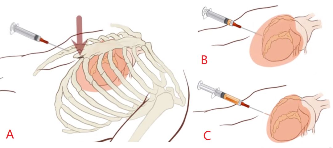 还没当成心内科主治医就跑急诊去了,在急诊也没遇到穿刺的机会。对于心包穿刺,一直还停留住院医期间远远看着上级医师操作的阶段。十几年前,便携式超声还没有那么普及,基本上都是盲穿。印象中,上级医生强调的就是两点:位置、方向,剩下的也许就只能靠感觉了。