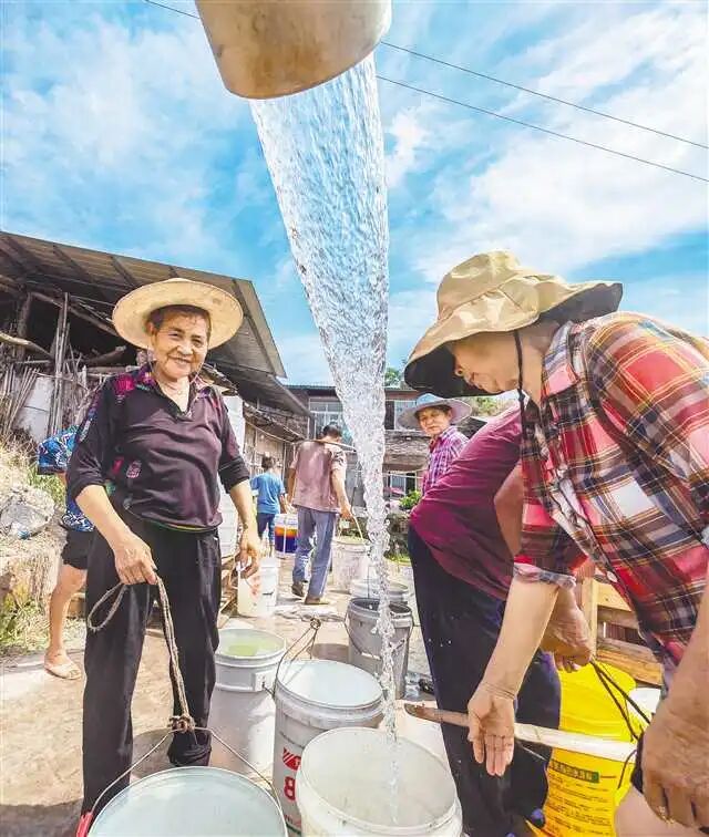 8月15日,北碚区澄江镇五一村甘家山,村民在集中供水点取水。我市各区县因地制宜采取蓄水保水、补充水源、分片分区轮流供水及应急送水等抗旱应急措施,保障群众生活生产用水。