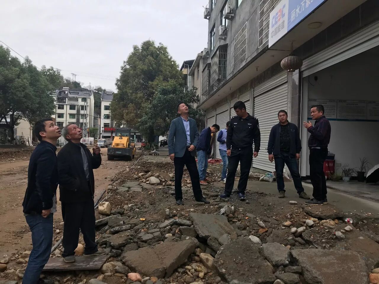 11月17日,象溪镇深入小城镇项目施工现场沟通、处理项目施工难题。