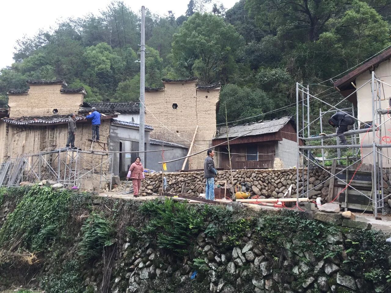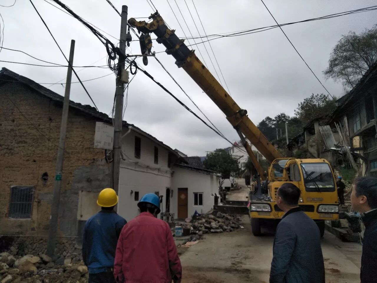 12月2日,大东坝镇开始拔除“线乱拉”强电废除杆线。