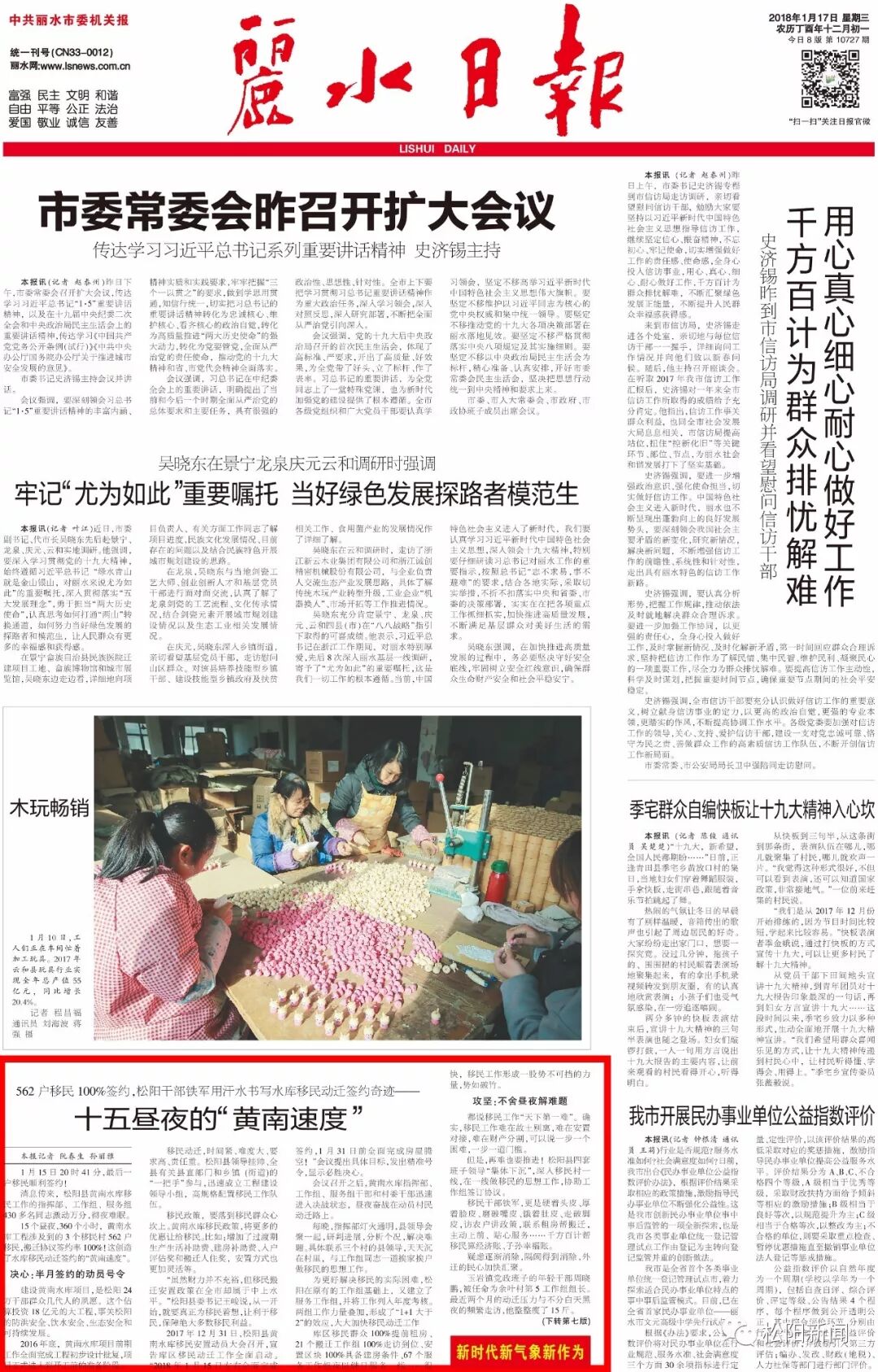 2017年12月31日,松阳县黄南水库移民安置动员大会召开,宣告库区移民动迁工作全面启动。“2018年1月15日左右全面完成签约,1月31日前全面完成房屋腾空!”会议提出具体目标,发出精准号令,显示必胜决心。