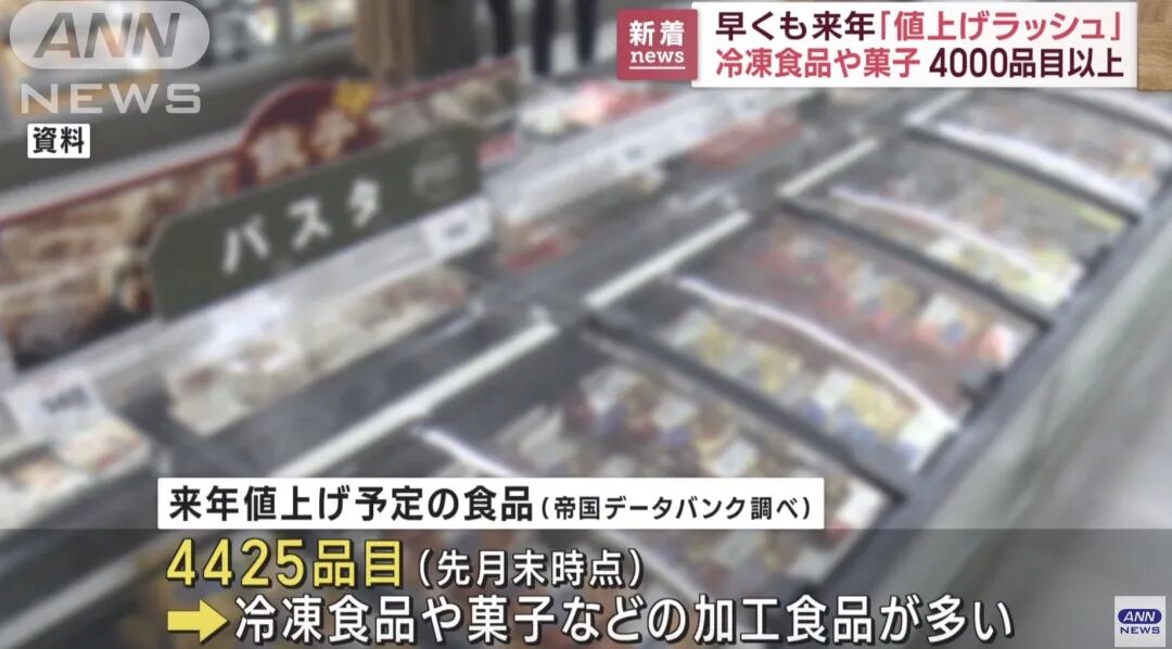 根据日本新闻报道,明年日本将面临破纪录的“涨价潮”。105家主要上市食品饮料企业的调价方案显示,截至11月底,2023年提价的项目总数达到4425个。