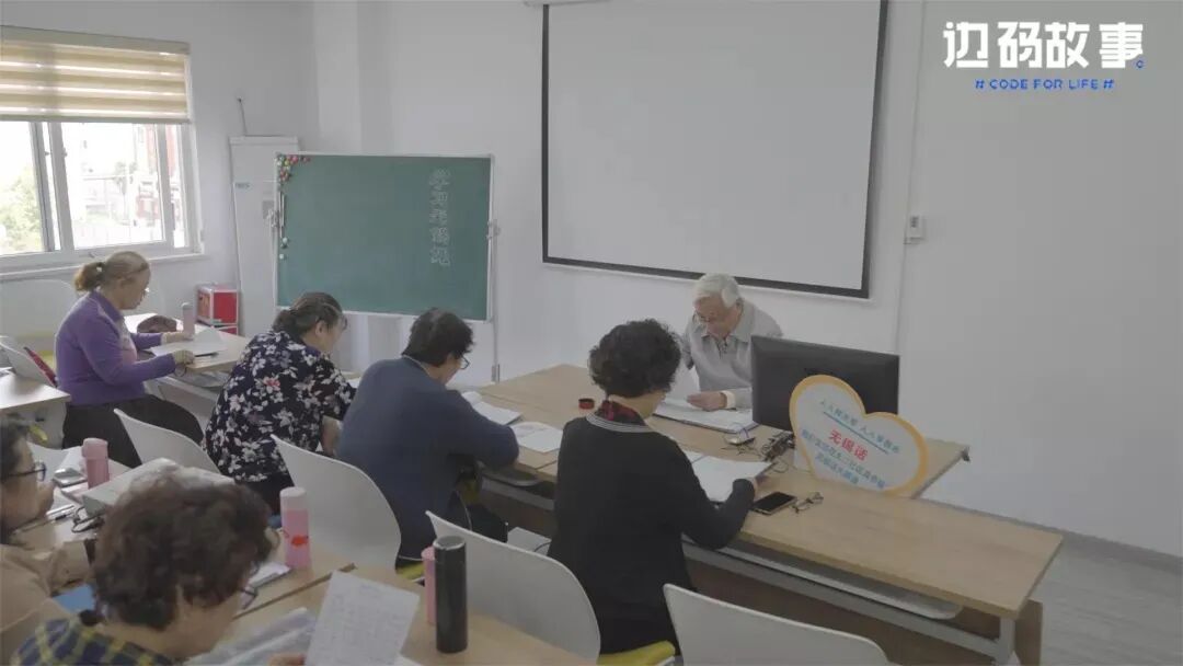 汉字班最初由社区书记上,后来书记退休,社区找来了一位全职妈妈,每周来社区一次,教社区里十多个文盲老人识字。课程上了两个学期,后来她预备回到职场,识字课就此停办。