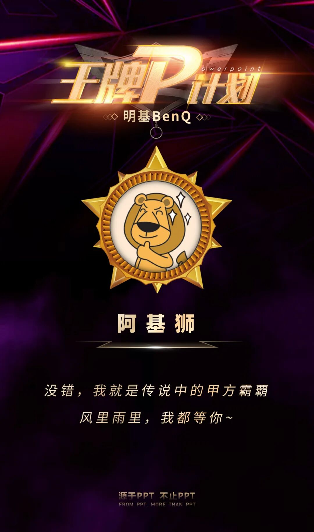 本期王牌P计划,我们特邀嘉宾——来自BenQ的「阿基狮」,代表品牌方对大家进行考核。