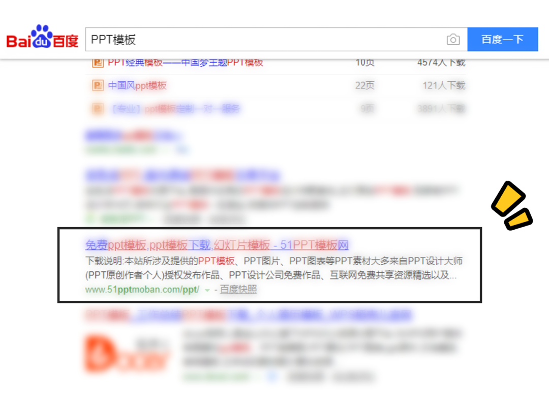 百度搜各种PPT的关键词,51PPT模板都在前列。