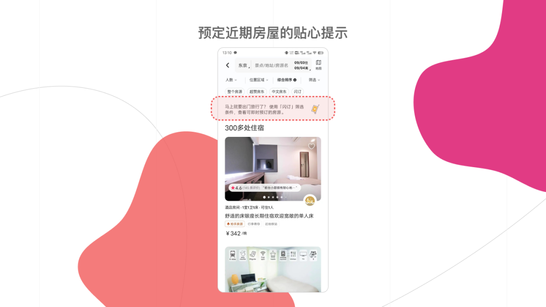 在Airbnb搜索房源时,如果日期是今天/明天,跳转列表页后会在顶部弹出消息提示:为了更快的找到并入住,可以启用闪订查看即时房源。