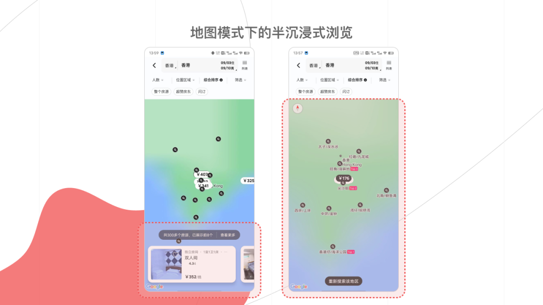 Airbnb在地图模式下对房源分布的区域进行视觉划分,通过预设的定位点做到了喜欢哪里点哪里。