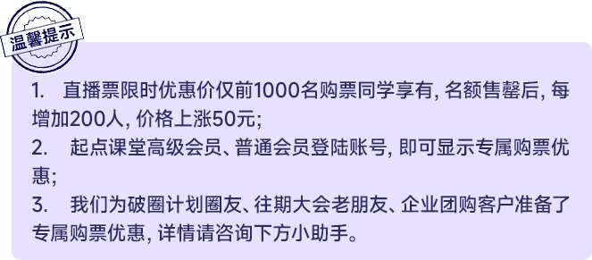 本次大会仅开放直播票,购买后即可收看完整的6个专场内容!