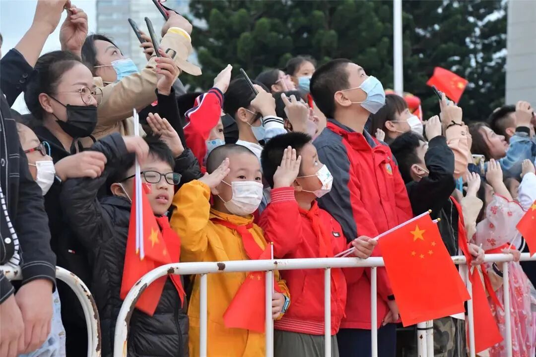 十月的秋风,让福州市五一广场中央的旗台显得更加庄严肃穆,天还没亮,就有家长带着孩子或朋友三两结伴早早来到五一广场抢占“前排”了,晨练的市民、路过的游客也纷纷驻足,聚拢到升旗台前,观看庄严的升旗仪式。![]()