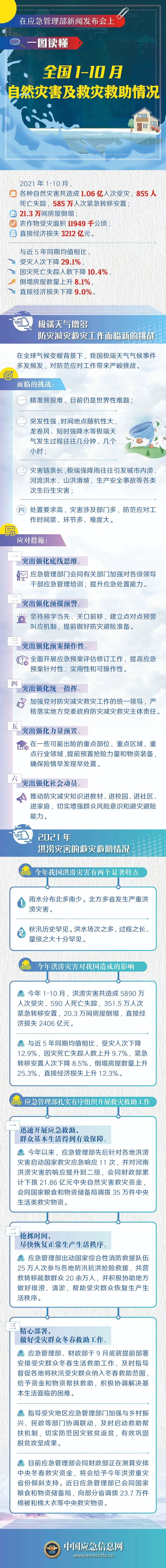 一图读懂 | 全国1-10月自然灾害及救灾救助情况