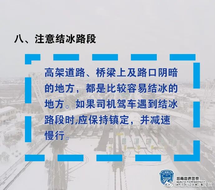 22日早上7点,长沙交警启动冰雪恶劣天气三级响应,各勤务大队及机动、特勤大队备勤警力24小时待命,对易结冰路段开展巡查,出现影响道路通行的情况,立刻采取交通分流或交通限制措施,同时通知辖区城管、市政等部门联动应急处置。