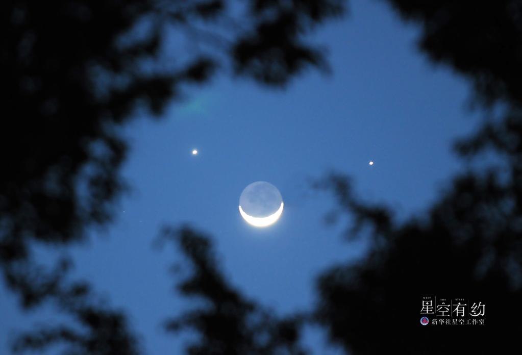 ▲ 这是2008年12月1日在肯尼亚首都内罗毕拍摄的“双星伴月”天象奇观,月亮和金星、木星同时出现在夜空中,远看犹如一张笑脸。(新华社记者徐速绘 摄)