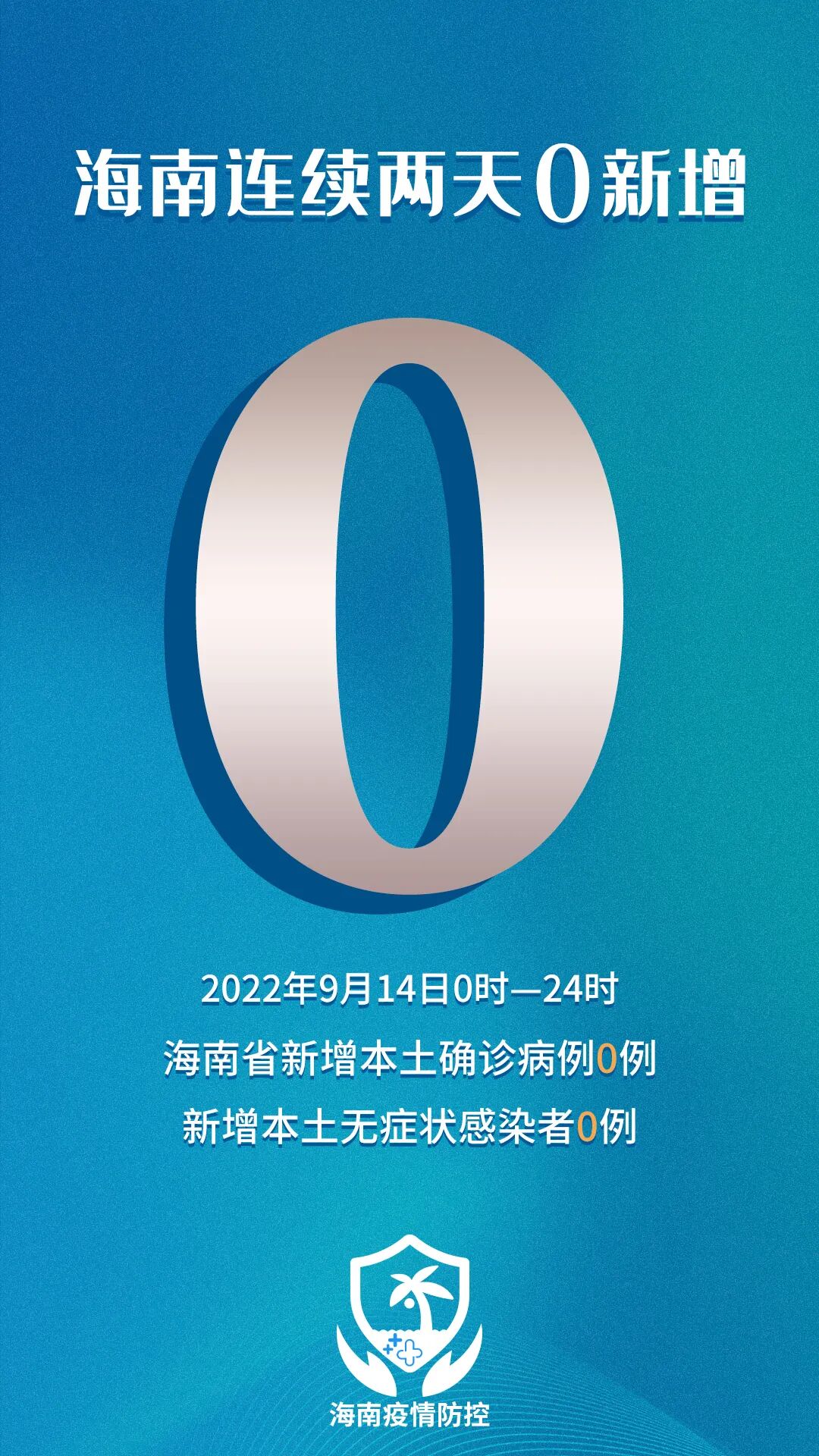 2022年9月14日0时—24时,海南省无新增感染者。