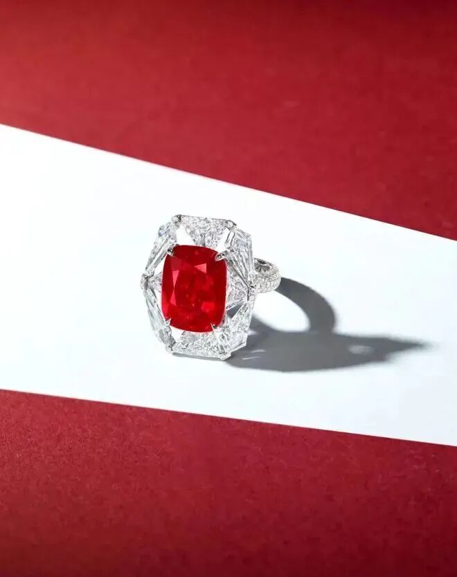其中就包括12.64克拉的缅甸天然红宝石及钻石戒指,估价最低值是2200万港币(约1994万人民币)。