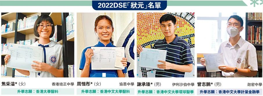 今屆DSE考生中四開始面對持續的新冠疫情,堅定多名狀元「想從醫」的志向。來自傳統名校協恩中學的「超級狀元」周愷彤昨日放榜後分享指,自己立志留港讀醫,日後投身公立醫院,服務基層市民。她說:「疫情下看到醫療系統承受巨大壓力,醫護人手短缺,我想貢獻社會。很多基層市民使用公立醫院,希望我可以服務到更多有需要的人。我想在熟悉的地方、用熟悉的語言去服務香港。」
