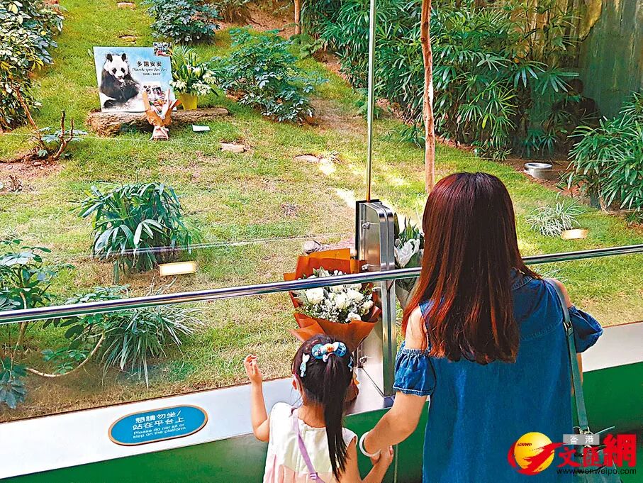 市民到海洋公園「四川奇珍館」悼念大熊貓「安安」。香港文匯報記者 攝