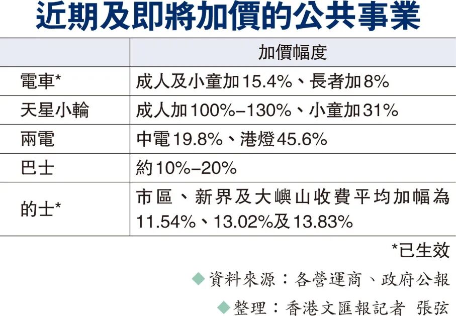 他指出,新冠肺炎疫情大大影響了香港經濟,很多市民幾年來沒人工加,巴士費加價一兩成,兩電又加價20%至45%,「乘搭公共交通和用電費是必需開支,無法削減,必然嚴重影響民生,兼而推高通脹,令市民百上加斤,有得震冇得瞓!」