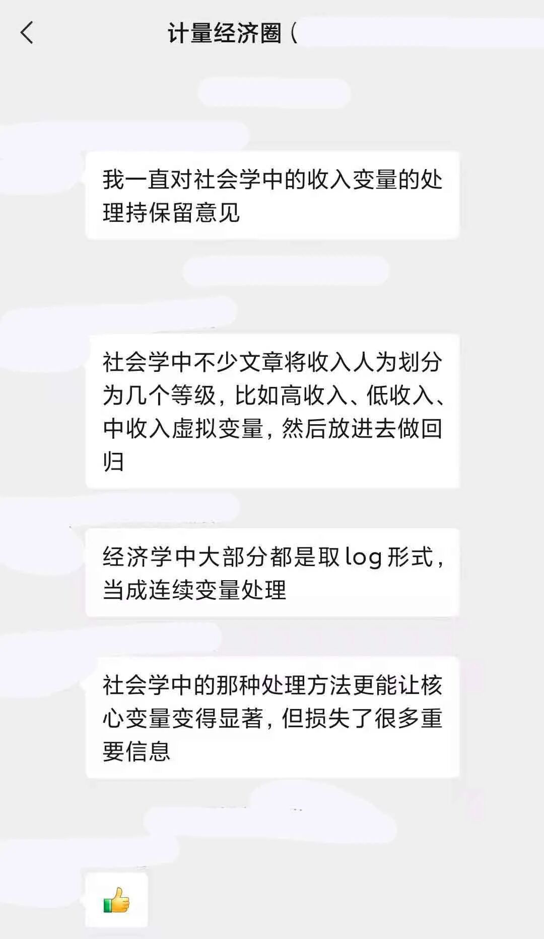 问题:解释变量是一个-9到9的整数,数据里面有0存在,这样的解释变量不能用来做回归吗?以及像类似于收入变量,是将其转化成3-4个有序离散变量(类似于低收入、中收入、高收入)还是当成连续变量进行回归呢?