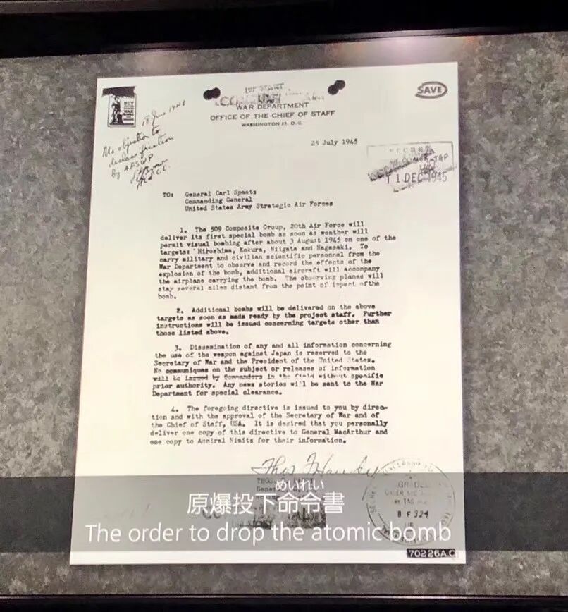我又来到距离小男孩约50米的胖子 The Fat Man 基地,玻璃罩图片展示当年运载情景。据说该名称受喜好幽默的丘吉尔体形启示,他曾与罗斯福总统在纽约上州海德庄园签署了秘密协议, 在广岛原子弹原爆博物馆我看到了这份文件。1945年8月9日由Charles Sweeney驾驶B-29轰炸机“Bock scar”在长崎上空9000米投下“胖子”,6天后裕仁天皇下终战诏书,日本无条件投降,9月2日日本在密苏里战列舰签署投降书,二战至此胜利结束。