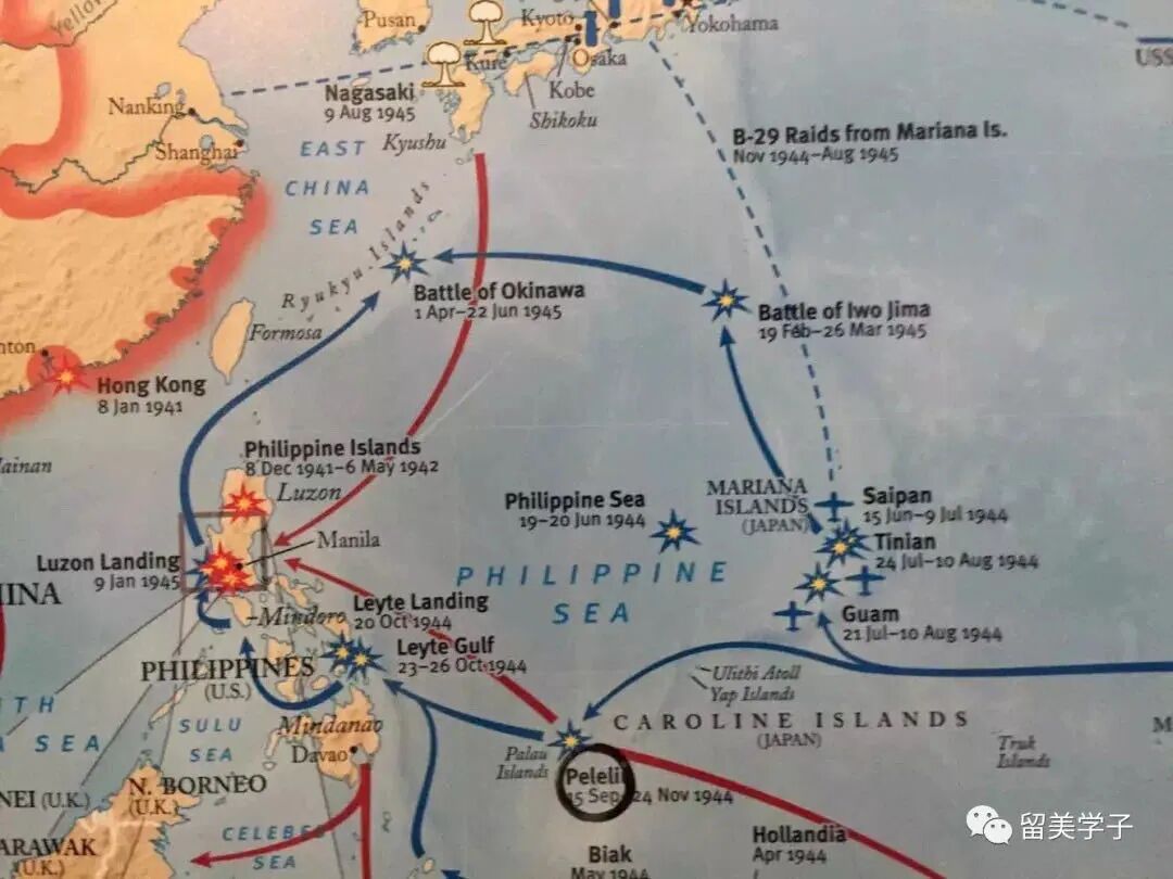 1898年美西战争结束之后,西班牙将关岛割让给了美国,把帕劳和马里亚纳群岛的塞班岛出售给了德国(第一次世界大战中德国战败,日本接管了帕劳和塞班岛), 1941年12月7日,在突袭珍珠港之后的几个小时,日本火速从台湾调集军队,风驰电掣地先占领美国在菲律宾的基地,然后从塞班岛出发,以迅雷不及掩耳闪电之势开始攻占美属关岛!