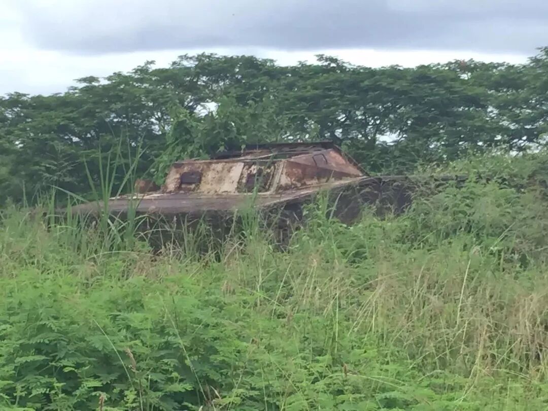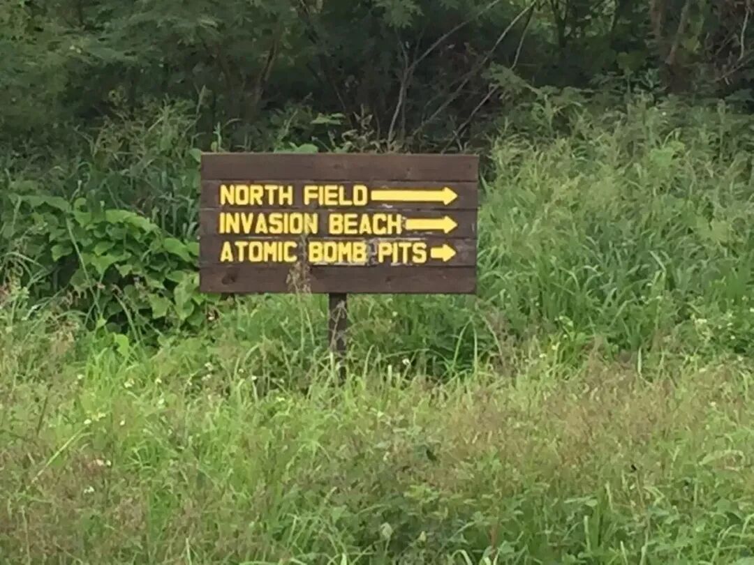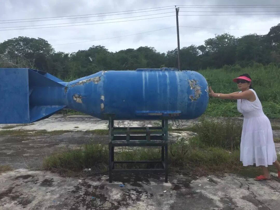 苍天不负有心人,那些面目狰狞的黑云终于消散了, 风雨初停,我跳下飞机,当地导游杰夫瑞开吉普车接我,双脚踏上天宁岛,在这里飞出了“地狱火鸟”!作为二战迷,我凝视着岛上接踵而至的黄色英文路标,好亲切啊!以前只在书籍里看到,现在历史在手指尖跳动,触手可及,如晨钟暮鼓撼人心弦;“原子弹装载遗址(Atomic Bomb Pits)” “美军登陆海滩”“B29轰炸机起飞跑道”“B-29库房” -----俨然是一座“魔鬼终结”博物馆!天宁岛茂密的植物地貌像极了“走进非洲”的画面,但丛林中不是狮子大象而是无数废弃的坦克大炮,站在B-29原子弹轰炸机的北跑道上,耳畔引擎轰隆隆作响, 我仿佛看到保罗·提贝兹Paul Tibbets英姿飒爽地登上飞机……再往北走。就是“小男孩”和“胖子”的藏身密穴了!