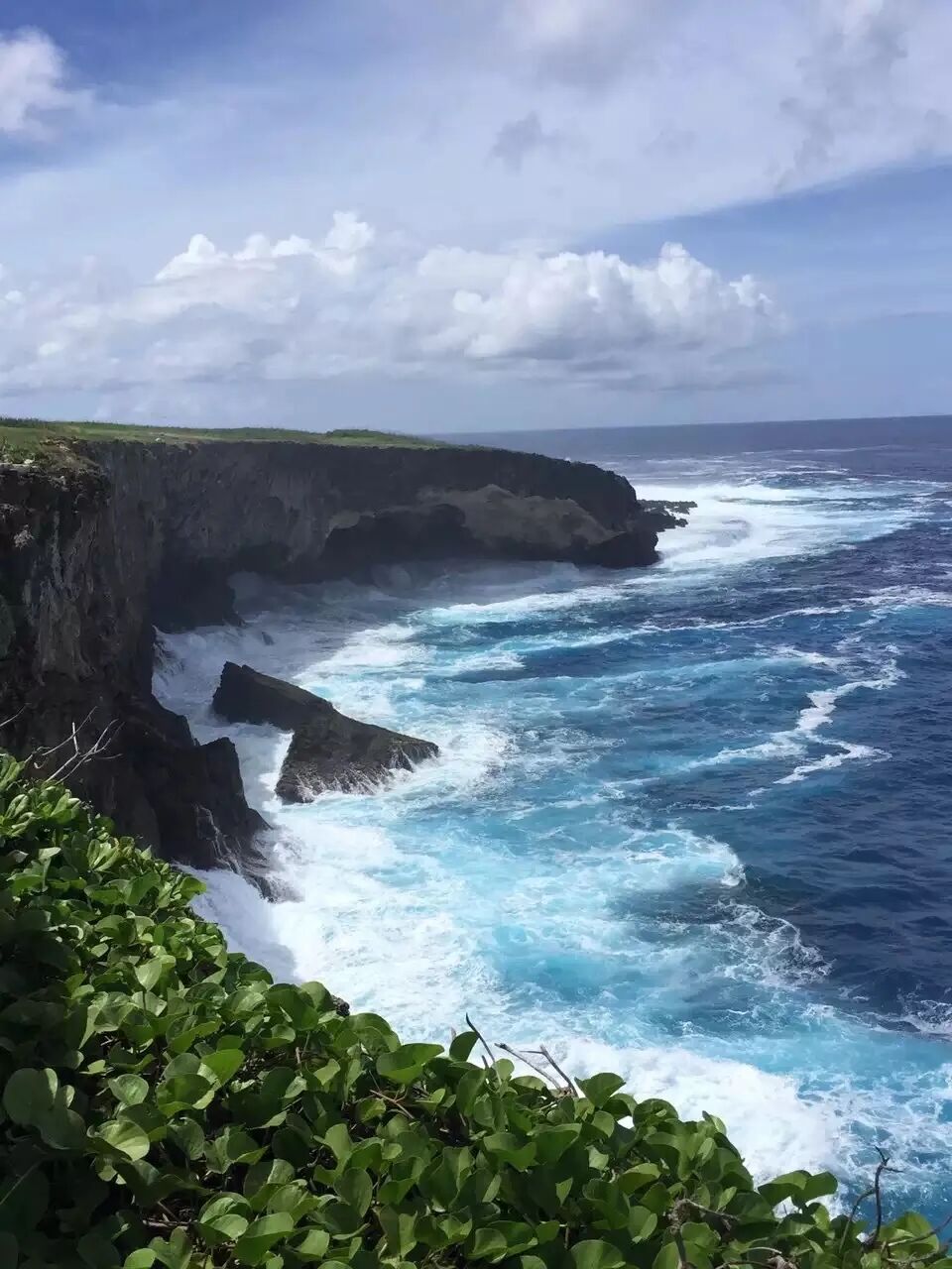 我站在最北边雄壮的自然景点——喷水海岸(Blow Hole),一览天宁岛的全貌,在天宁岛南边是一系列陡峭的海边山崖,其中最著名的是自杀崖(SuicideCliff),1944年天宁岛战役末日,残余日军高喊“天皇万岁“跳入陡峭海边著名自杀崖, 最残忍的是日军强迫驻军家属和岛上居民全部“玉碎”跳崖自杀,她们有的是母亲和女儿手拉着手跳崖,也有的是女兵姐妹直接从沙滩走入大海,怀里栓着沉重的石头, 边哭边走……