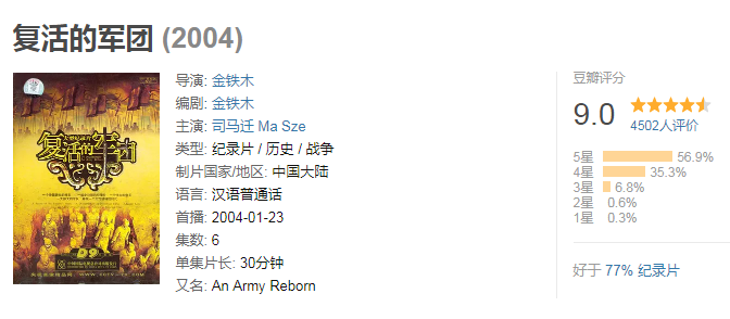 不知道大家去没去过秦始皇帝陵博物院,见没见过秦兵马俑?70年代出土的兵马俑,给全世界人民还原了一支强大又神秘的军队。如果你想了解2000多年前的中国,想了解大秦帝国、大秦军队和大秦文化,这部纪录片就很合适。共6集三小时内,给我们讲述了秦军团的昔日荣光。