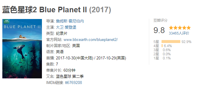 4年时间,123次远征探险穿越每片海洋,1500天的水下作业,6000多个小时潜水艇拍摄,BBC用最先进的技术为我们打开了一个前所未有的新世界。