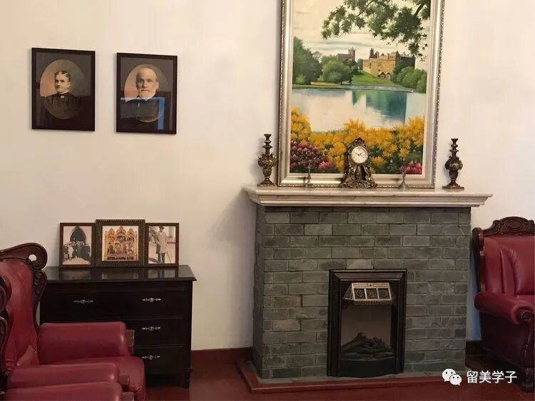 穿过门廊,迈进故居,宽敞的厅堂,暗红色的地板,扑面而来的是一种历史的厚重感。走进一楼左手边第一间起居室,对面墙上一个近1.5米高的灰色壁炉和上方挂着的大幅油画格外醒目。壁炉上还摆放着一个银质烛台和一盏古朴的座钟。壁炉两侧靠墙摆放着几组红褐色的真皮沙发。尚未燃尽的蜡烛头、嘀哒嘀哒的钟摆声,让人依稀触摸到幼年司徒雷登在此玩耍的场景。