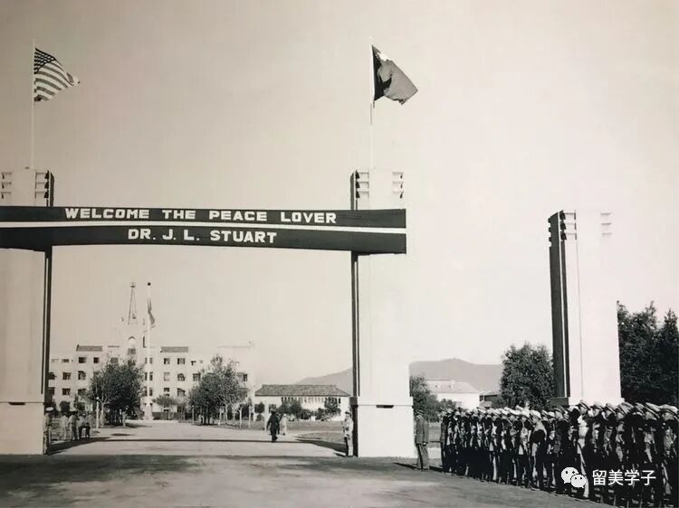 1946年司徒雷登回杭州时,杭州笕桥机场道路上的欢迎横幅。上面写着"欢迎爱的使者、和平的使者"。横幅上称司徒雷登博士,当时我有点不解。回来上百度一查(我现在上不了谷歌),原来啊美国普林斯顿大学在1930年授予过荣誉文学博士称号给司徒雷登,所以他的博士头衔是实至名归的。