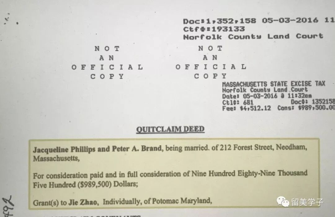 哈佛教练把自己曾经居住的住所以 美元989,500 卖给了赵夫妇, 远远高于市场价。