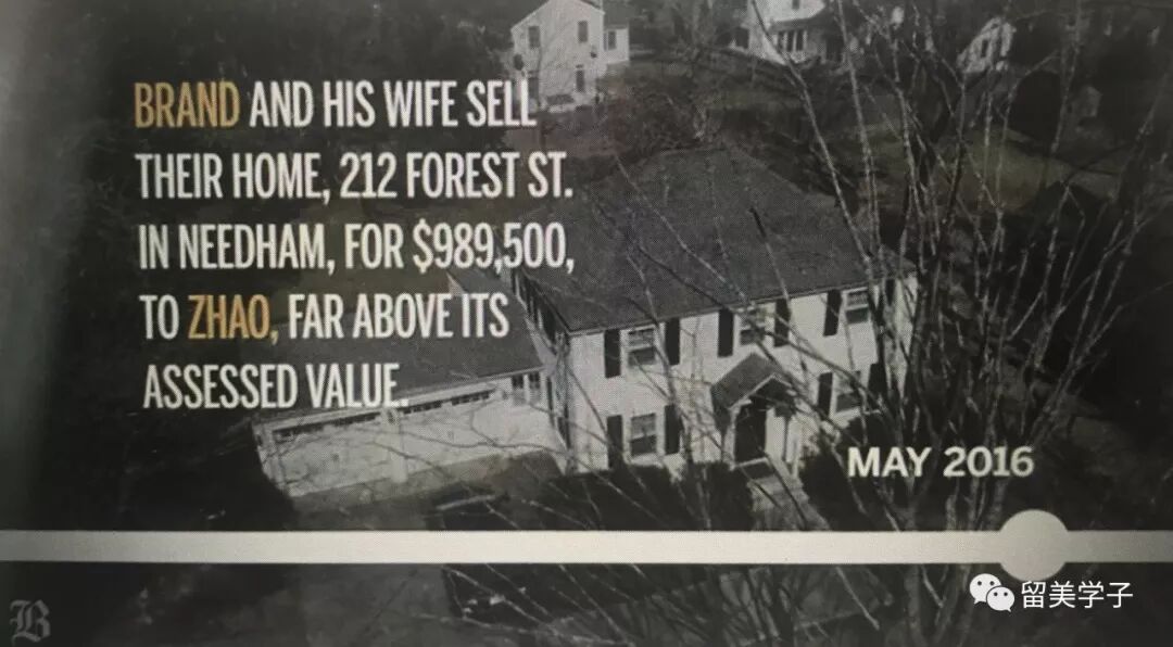 2016年 Brand 哈佛教练的房子市场估计也就50多万美元, 但是赵氏夫妇却用了几乎美元100万买下, 自己根本没有住过, 17个月后以净损失30多万美元的代价再卖出。 而Brand教练当年卖出房子时, 赵氏夫妇的二儿子以击剑运动员的身份迈入哈佛大门。