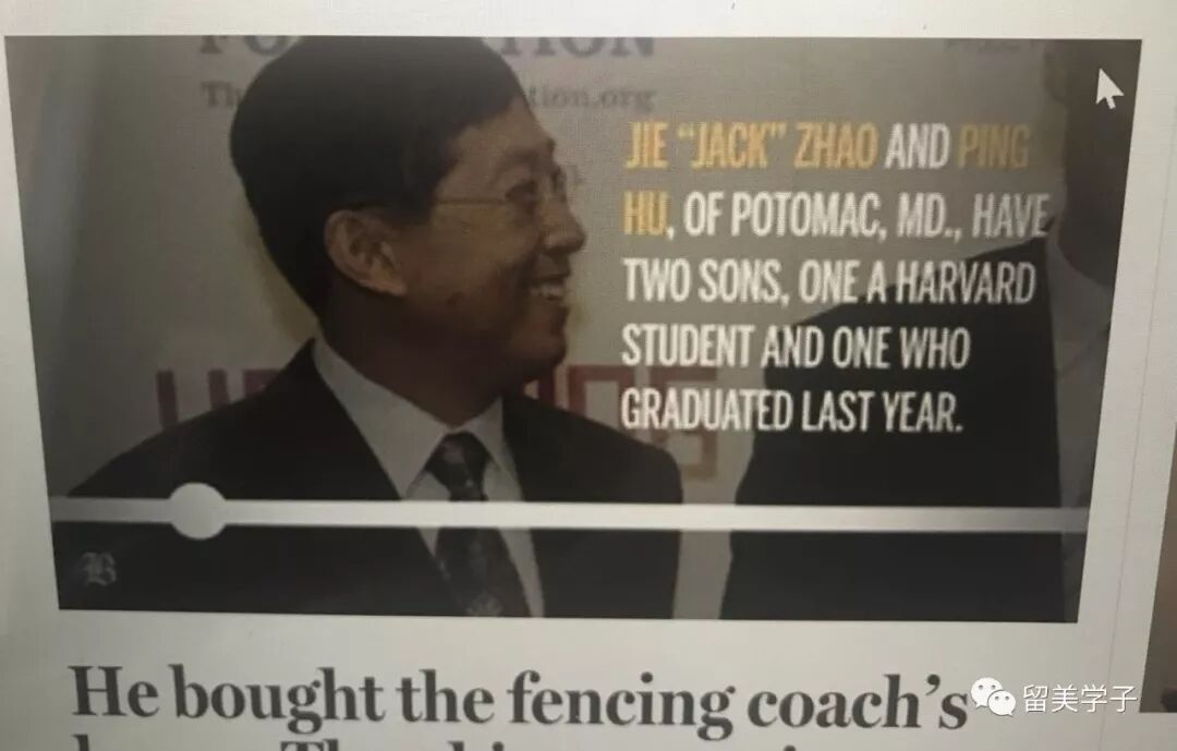 他买了击剑队教练的房子,然后他的儿子进了哈佛, 他是赵姓的华人。