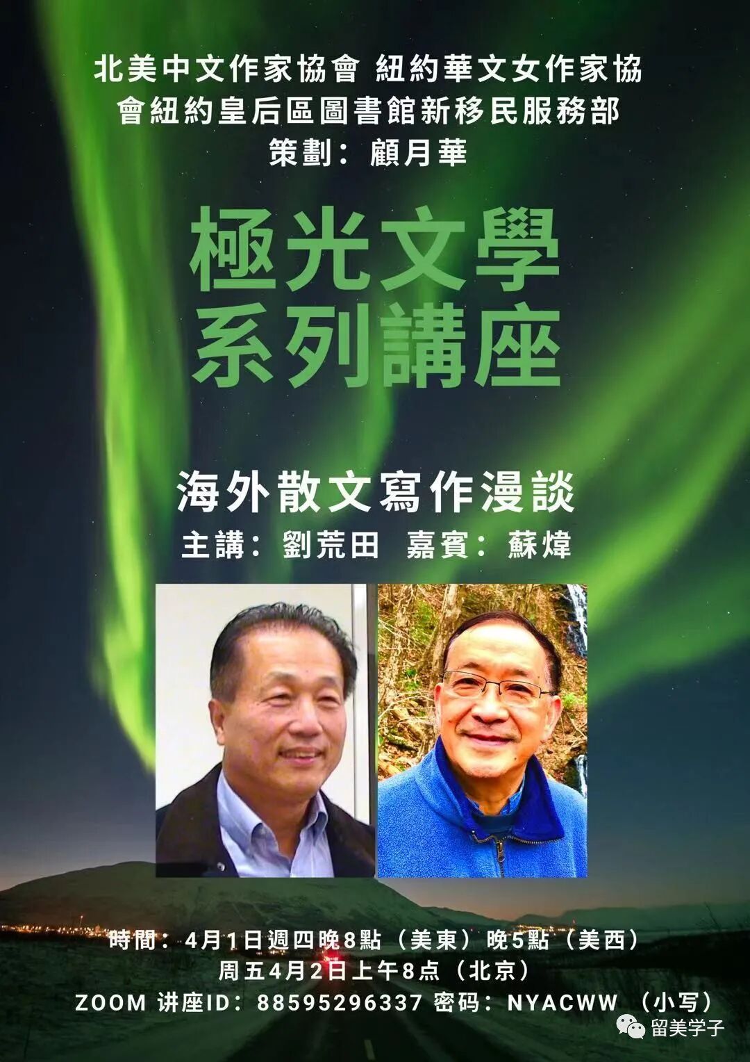 如同极光的炫灿横空出世,短短数月间,已成为北美华文作家创作“云讲堂”,最靓丽的风景线。