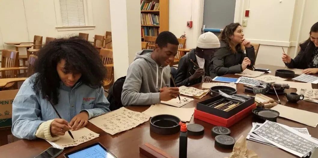 和学生在耶鲁书法课上