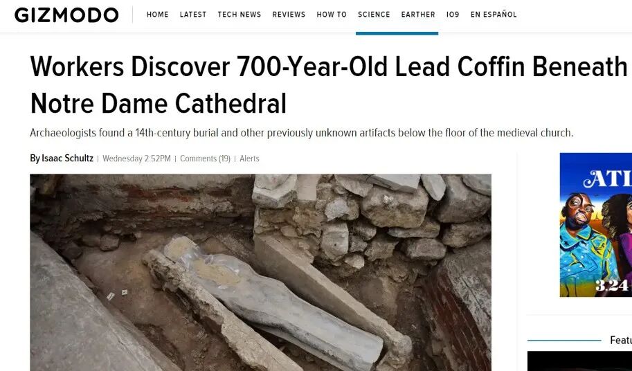 最近,考古学家在圣母院的地板下,意外发现了几座墓葬,和一个保持良好,可以追溯到14世纪/700年历史的铅制石棺。