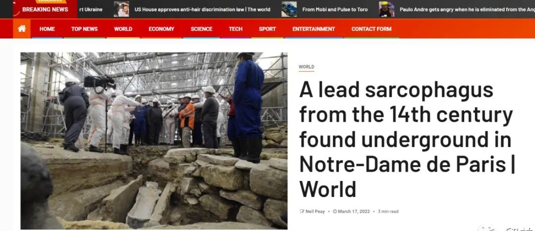法国文化部说:这些墓葬内容“具有卓越的科学质量”,而且是在为重建巴黎圣母院古教堂尖顶的准备工作是发现的。