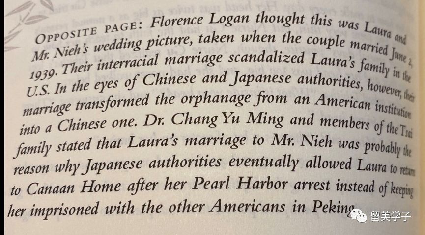聂先生对Laura无比崇拜,佩服她养育和管理孩子们的能力和个人魅力:既温柔体贴,又坚定不移;既轻言细语,又果敢智慧。在北京,Laura从生活的各个方面都离不开聂先生的支持。这也许是个合作式的婚姻,谈不上爱情,他们互相扶持、共同向前。由于她和中国人结婚,根据美国1924年的法律,她失去了美国国籍,但这在珍珠港事件后,却使她避免了像其他美国人一样遭受日军的长期监禁。