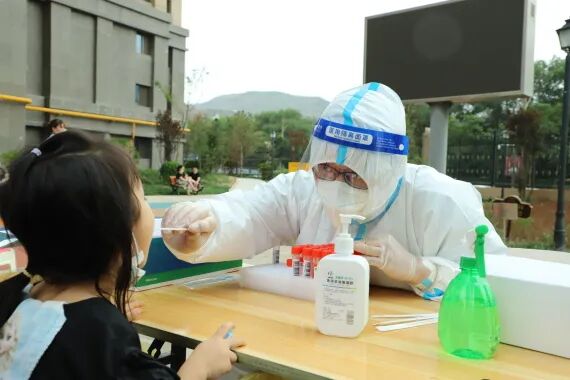 医务人员在兰州市城关区东岗东路街道为市民进行核酸采样。(甘肃省第二人民医院供图)