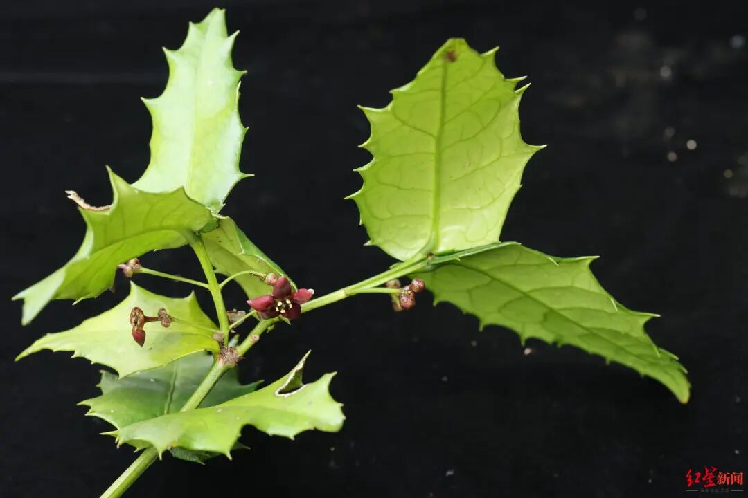 该实验站科研人员李小杰介绍,今年5月,他和同事在峨眉山中调查新发现的植物少羽囊瓣芹时,在一片山坡的树林中意外发现了一种新奇的植物——叶片很像冬青,生长方式很像卫矛,但当时峨眉山已发现的卫矛科植物里又没见过。这到底是什么植物?李小杰拍摄了该植物的照片发到网上,经中科院成都生物所植物专家初步鉴定,该物种是尖齿卫矛。为进一步确认,李小杰又多次前往现场考察,终于在8月底拍摄到该物种的花朵,后再经成都生物所专家鉴定,该物种确实是“消失”百年的尖齿卫矛。据了解,1908年,英国植物学家、著名“植物猎人”威尔逊在四川西部采集到尖齿卫矛果期标本,自此之后的一百年内再未寻得其踪迹。直到2021年,中国科学院成都生物研究所科考人员才在四川贡嘎山地区发现了尖齿卫矛鲜活种群。此次在峨眉山发现尖齿卫矛,是一百年来四川省发现的第二个尖齿卫矛鲜活种群,这对开展尖齿卫矛保护乃至峨眉山生物多样性保护都具有十分重要的意义。据了解,尖齿卫矛为四川特有种,属于极度濒危物种(CR)。幸运的是,经调查发现,本次在峨眉山发现尖齿卫矛的区域不仅有健康的尖齿卫矛成年植株,还分散着数十株幼苗,且生境暂时未受到人为活动影响。![]()
