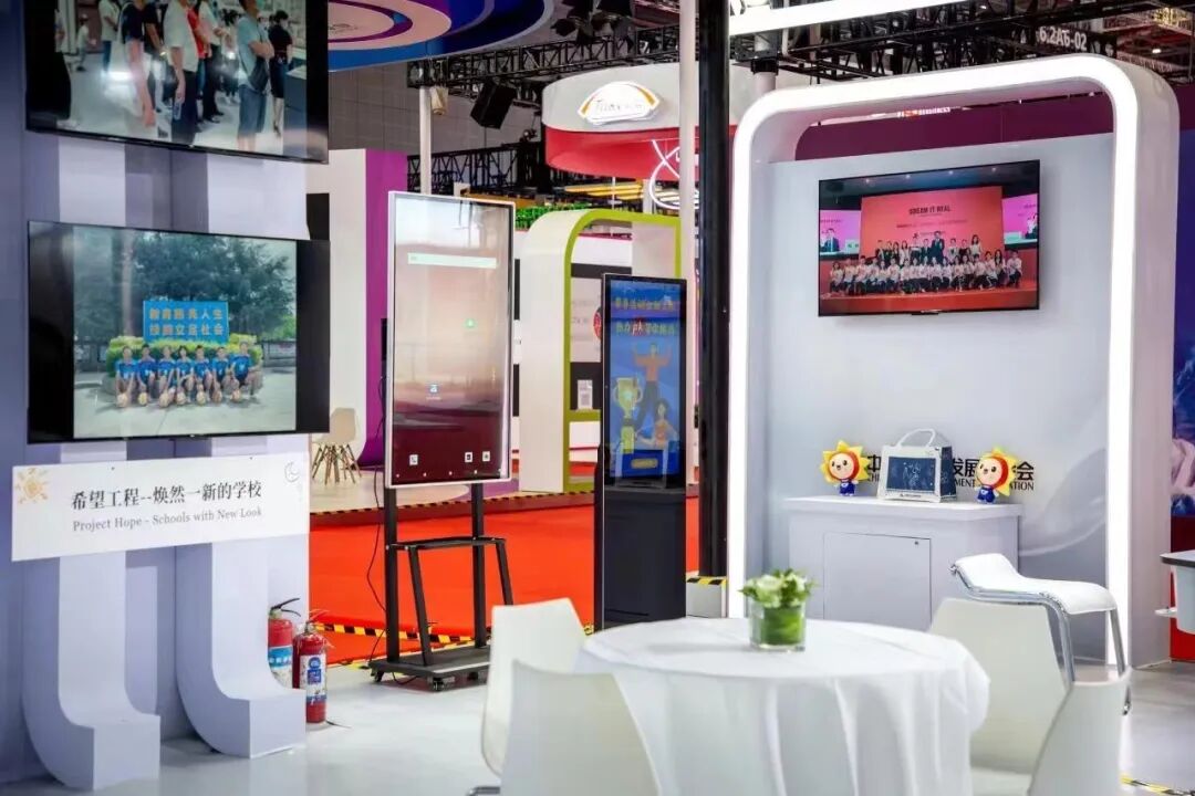 展会首日,在中国青基会展区内,不仅能看到对新时代希望工程“五大计划”的生动呈现,现场还设置了互动体验设备,通过互动屏幕、小平实验室设备等,让参观者切身体验中国青基会规划实施的重点项目,感受公益助力教育发展,让更多青少年学习科技知识,培养他们的创新精神和实践能力。