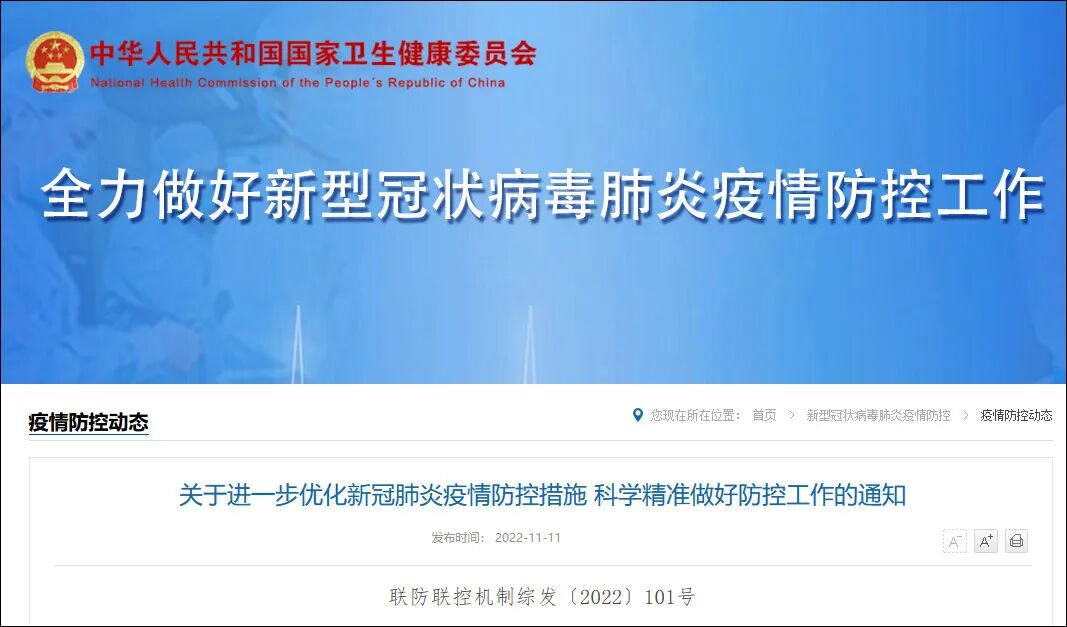 新冠肺炎疫情发生以来,在以习近平同志为核心的党中央坚强领导下,我国坚持人民至上、生命至上,坚持外防输入、内防反弹,坚持动态清零不动摇,因时因势优化完善防控措施,积极应对全球多轮疫情流行的冲击,最大程度保护了人民生命安全和身体健康,统筹疫情防控和经济社会发展取得重大积极成果。11月10日,中央政治局常委会召开会议听取新冠肺炎疫情防控工作汇报,研究部署进一步优化防控工作的二十条措施。为贯彻落实中央政治局常委会会议精神,抓好疫情防控和优化调整措施的实施,现就有关工作通知如下: