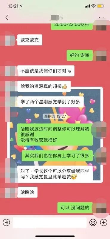 安硕同学与辅导学生聊天截图