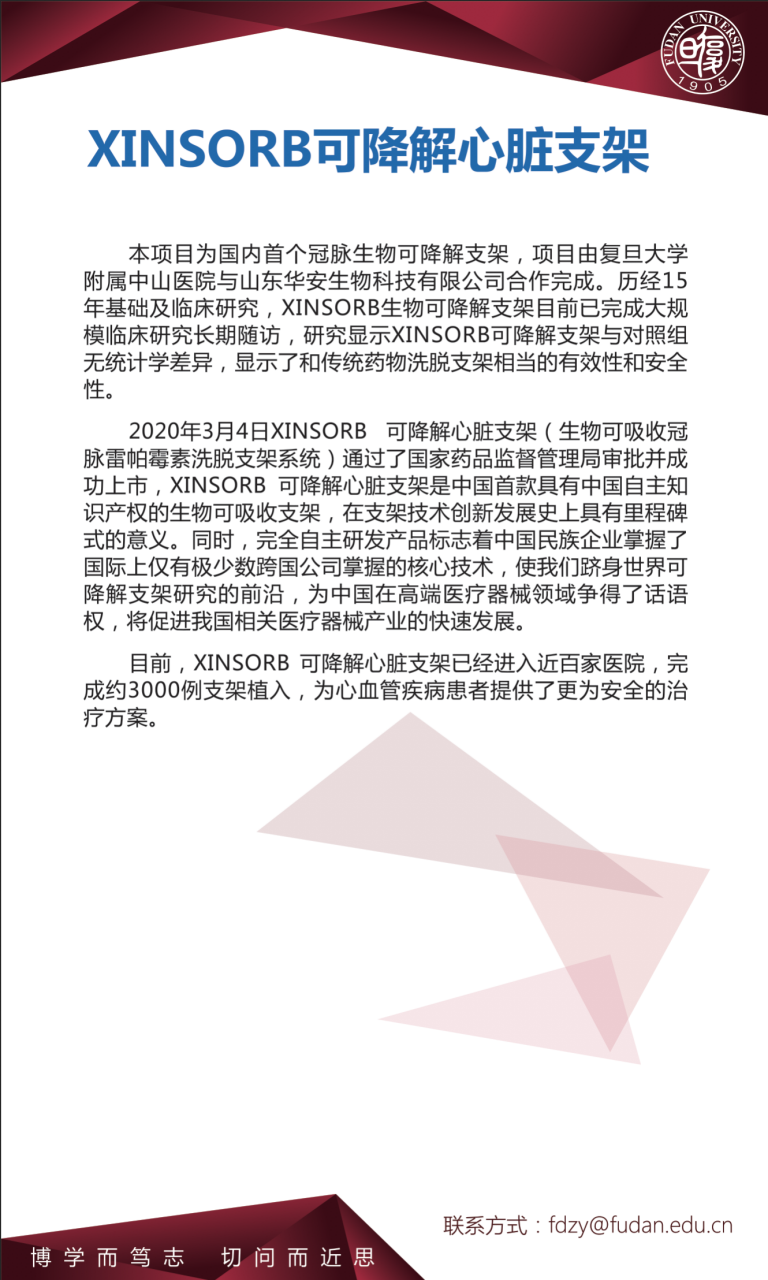 本届高交会上,复旦大学荣获优秀产品奖的项目包括:附属中山医院葛均波院士团队的“XINSORB完全可降解心脏支架”、附属华山医院徐文东教授团队的“新型手部外骨骼”、工程与应用技术研究院齐立哲研究员团队的“柔性机器人制鞋生产线”、工程与应用技术研究院雷光寅研究员团队的“碳化硅半导体功率件”、化学系邓勇辉教授团队的“基于介孔半导体技术的超灵敏智能气体传感器”、信息科学与工程学院徐丰教授团队的“智能感知的毫米波传感器”、高分子科学系彭慧胜教授团队的“全柔性发光纤维”、信息科学与工程学院肖力敏研究员团队的“多芯光纤扇入扇出器”和“新型光纤反向拉锥模场适配器”,和创新创业学院唐晓峰博士团队的“Hymax碳化二亚胺类抗水解添加剂”。其中,以上前六项获奖产品也为优创展区产品。