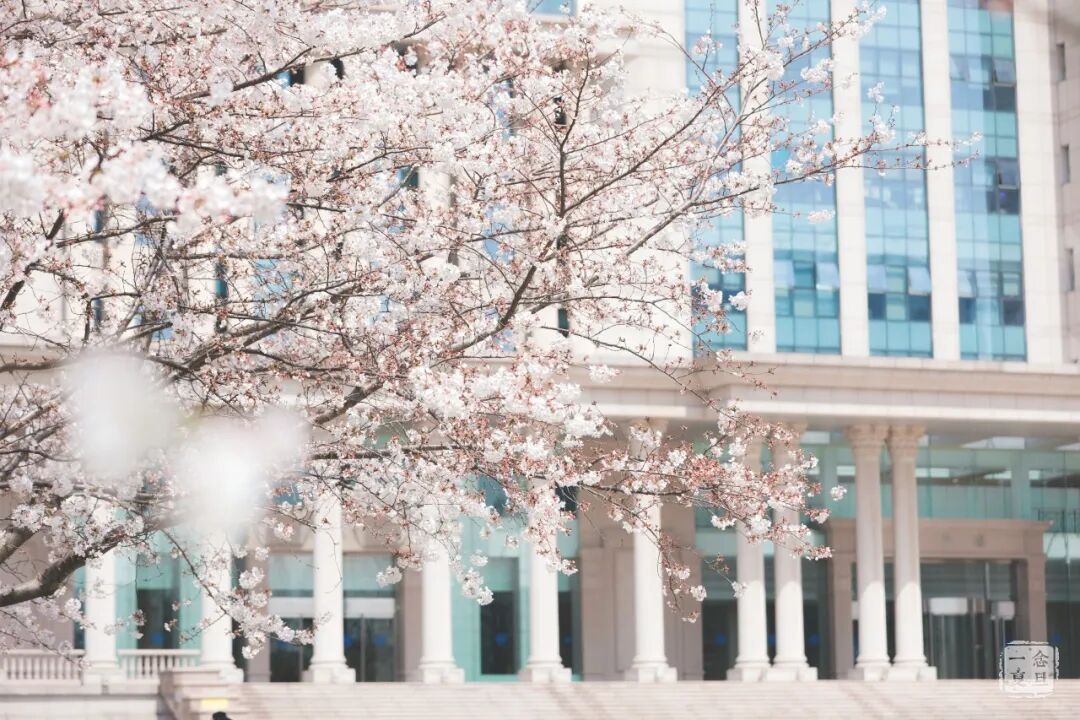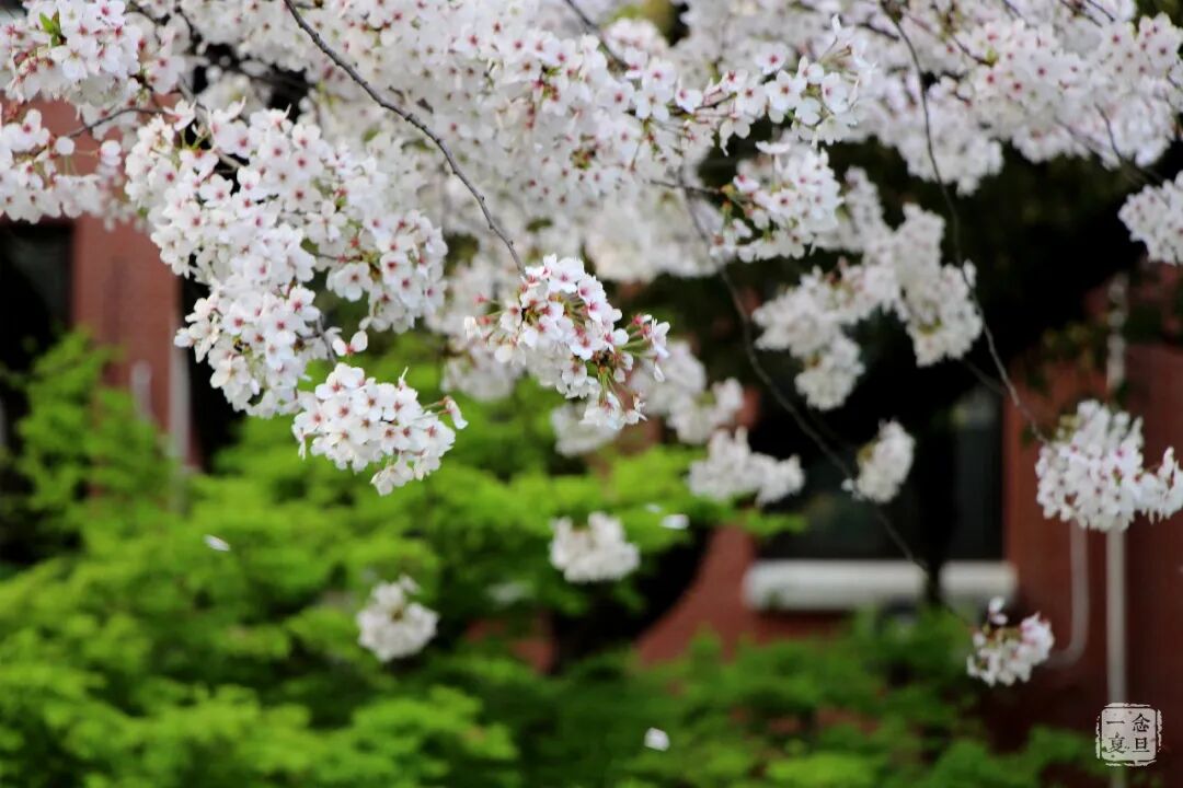 光华楼庄严的灰白和草地娇俏的嫩绿之间