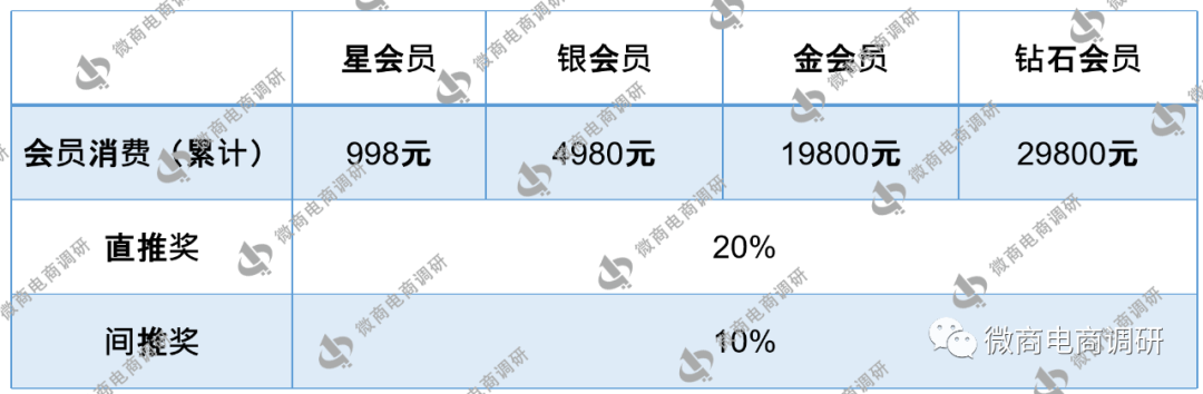 文章最后,让我们来看看广昀星的代理制度。据经销商介绍,广东广昀星智能健康管理(集团)股份有限公司代理分为星会员,银会员,金会员和钻石会员四个等级,星会员需消费998元,银会员需消费4980元,金会员需消费19800元,钻石会员需消费29800元,直接推荐奖20%,间接推荐奖10%。