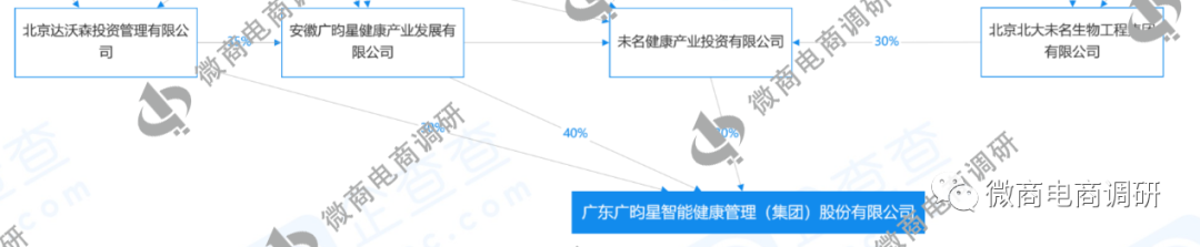 据广东广昀星智能健康管理(集团)股份有限公司官网介绍,其公司是北大生物参股经营的智能健康管理集团公司。据调查,广东广昀星智能健康管理(集团)股份有限公司的股东之一为未名健康产业投资有限公司,公司大股东就是北京北大未名生物工程集团有限公司,持股30%。