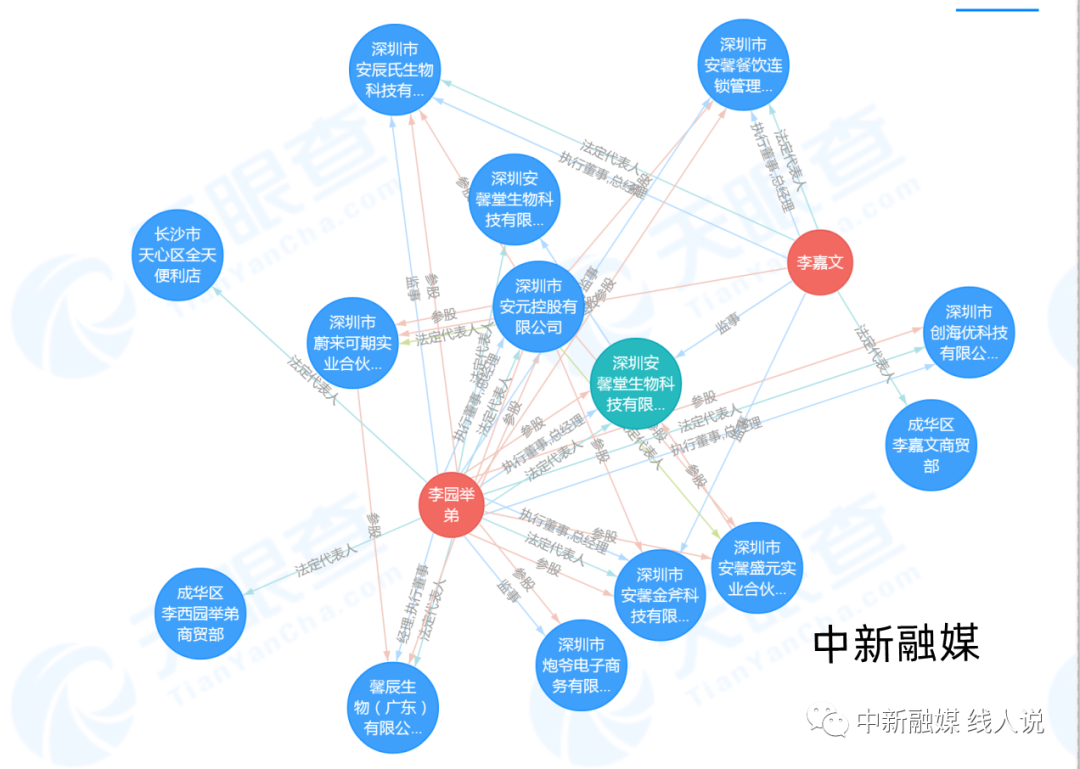 据天眼查显示,深圳安馨堂生物科技有限公司成立于2015年3月27日,注册资本为1250万,李园举弟担任法人。