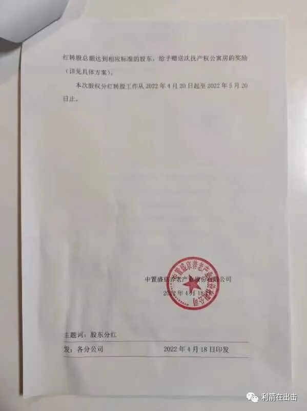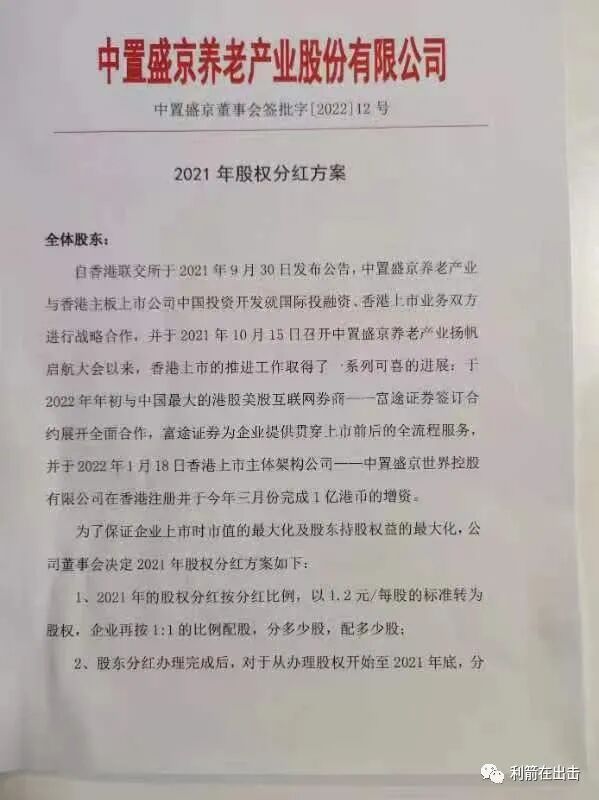 老人说:“年年都在说马上上市,一年推一年。2021年中置盛京养老产业股份有限公司又说加了碳中和的项目,2021年年底之前,要在香港上市。要在海南博鳌会议中心召开碳资产项目新闻发布会,邀请凤凰卫视,环球时报和央视各大新闻媒体到会。中置盛京要发布碳中和项目的宣言,并且,中置盛京要拿出5000亿美元,支持中国的碳中和。”在2021年下半年还真的搞了一个虚拟数字货币叫“绿碳通圆”,俗称“碳币”,实际就是给老人们挖了一个坑,搞了个资金盘。这个虚拟币是不是骗局?不用说,大家都知道国家严打中。目前不少老年人在维权讨债之中,俗话说:兔子不吃窝边草,这个在沈阳骗了不少老年人的公司为了忽悠住老年人,谎称在本月20日给老年人开个会,不说大家都能猜到开会内容,国家在严打养老诈骗,给老年人再画大饼,不要去报案而已,请看发的“2021年股权分红方案”